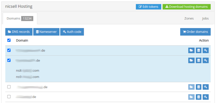 Mit nicsell Hosting stellen wir Ihnen ein kostengünstiges Domain-Hosting zur Verfügung. Dank zahlreicher Aktionen können Sie Ihren aktuellen Bestand verwalten, wie z. B. Authcodes anfordern, Nameserver setzen sowie die DNS-Records verwalten.
